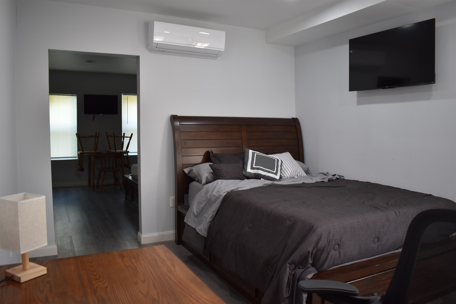 One Queens Bed in Newly renovated room (2024) New Bedding, Shower, Floor, Tile, Fixtures. heating and air conditioning.