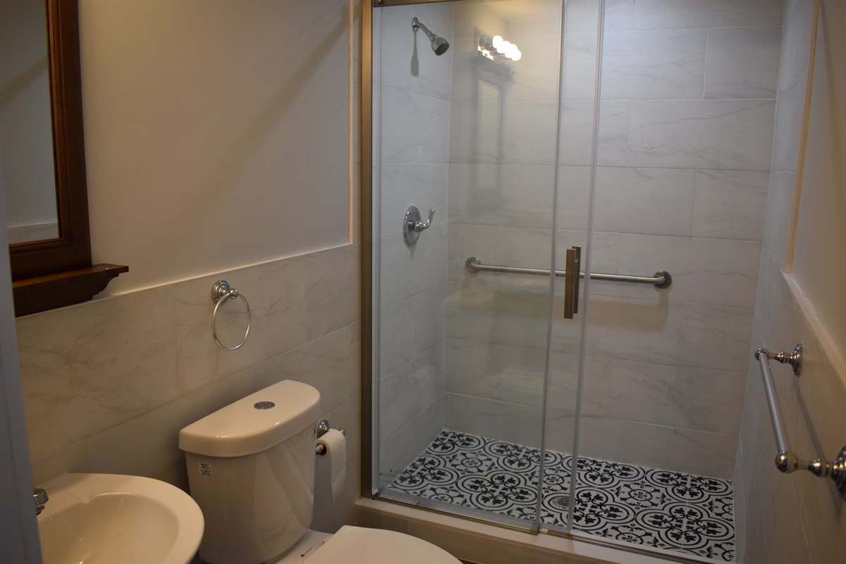 One Queens Bed in Newly renovated room (2024) New Bedding, Shower, Floor, Tile, Fixtures. heating and air conditioning.